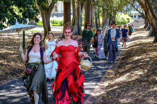 The day started, as it always does, with the car parking. The boy and I were running fairly on time, but there were already a huge crowd gathering under the usual tree. It was the gorgeous Antoinette who was this years ‘guild leader’, hosting the Rade and running us down Bourke Street, along Elizabeth, back up Collins and into the Treasury Gardens. I wish there had been some photos taken of the small group of us who entertained the locals and hopefully helped the buskers in dancing around them on the corner of Bourke and Elizabeth while the rest of the Rade caught us up midway.