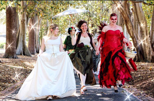 Photoed here are Antoinette and I leading the Rade back towards the gardens, the boy, @polyglittery, and her new beau taking a usual group shot, and me having no idea that I looked quite so fae, doctored by someone I don’t even know otherwise I’d totally credit. :D