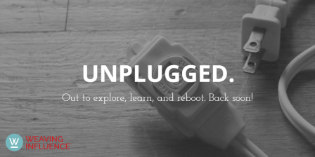I’ve been on Facebook since 2007 and personally blogging since 2010, but the first time I heard the term “unplugging” was just a few weeks after I began working with Weaving Influence in 2012. I had been involved in the launch of Whitney Johnson’s first book, Dare, Dream, Do, and when she decided to pause her online presence while on a post-launch break, she requested that I create an image that would represent her “unplugged” status. She even wrote a blog post about it before taking off.