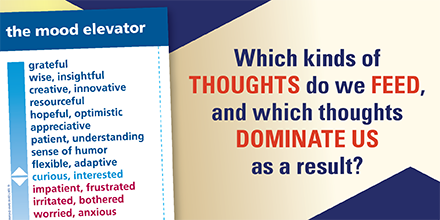Think of your moods like an elevator, and you’ll quickly recognize that you ride up and down it every single day, sometimes more than once. That’s normal, right? But it doesn’t have to be! As the author of today’s book points out: “There may be events that stimulate our thoughts, but it is the thoughts that determine our moods.” We can learn to control our mood swings by controlling our thoughts — no matter what’s happening around us — and enjoy a nice long stay at the top levels of the Mood Elevator.
