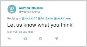 Twitter announced last week that “when you reply to someone or a group, those @usernames won’t count toward your Tweet’s 140 characters.” So for instance, if a client tweets a question at you, instead of your 140-character response including the number of characters in @weaveinfluence or @Forbes or @RealDonaldTrmp, etc., it looks like this: