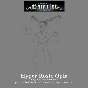 In our next round of eBooks, we’ll be introducing two of the folks in Hamelot who keeps the Royals looking good: Master Colin Stitcheson, the couturier, haberdasher and milliner (he’s a fancy tailor and designer), and Hyper Rosie Opia, the farsighted hairdresser.