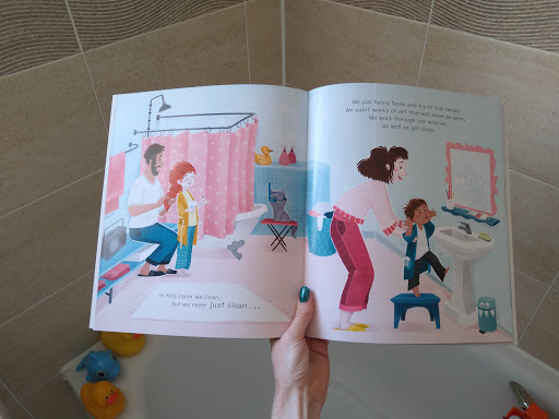 Lili La Baleine's artwork is beautiful. There is joy, fun and family in every picture. At the end of the story there are fold out pages with a view into lots of different houses which exemplify that there is no one way to be a family. Each page is full of tiny details and there is lots to keep little eyes busy.