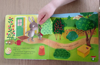 Follow Big Bunny and Little Bunny as they gather up the ingredients for Little Bunny's breakfast. Butter from the fridge, berries from the garden and even eggs from a chick coop. This book is extremely interactive and lots of fun. My three-year-old giggled with glee when we opened a flap to find something you definitely wouldn't want to bake. My five-year-old took the search for ingredients very seriously.