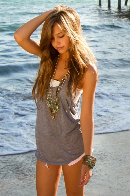 The Helian Realm is hot, so think summer clothes and beach style (not that any self-respecting Helian would be found anywhere near the beach, of course...). Bright colours are popular too, as well as black. I can imagine Roxy and Avery walking around Halia in outfits like these: