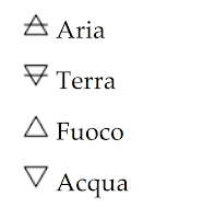 Ma c’è anche un altro livello di interpretazione. I quattro elementi naturali sono statiutilizzati in modo metaforico per rappresentare le diverse fasi dellatrasformazione spirituale dell'alchimista stesso. L’aria rappresentava lostadio di conoscenza e illuminazione, la terra lamaterializzazione e solidificazione, il fuoco la trasformazione e l'acqua lapurificazione e rigenerazione. Ecco i simboli associati a ognuno di essi.