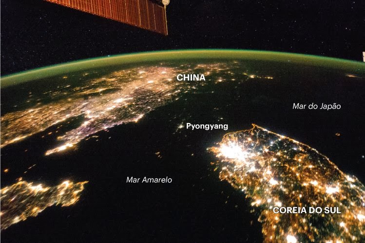 Planeta Terra à Noite: Coreia do Norte desaparece do Mapa...