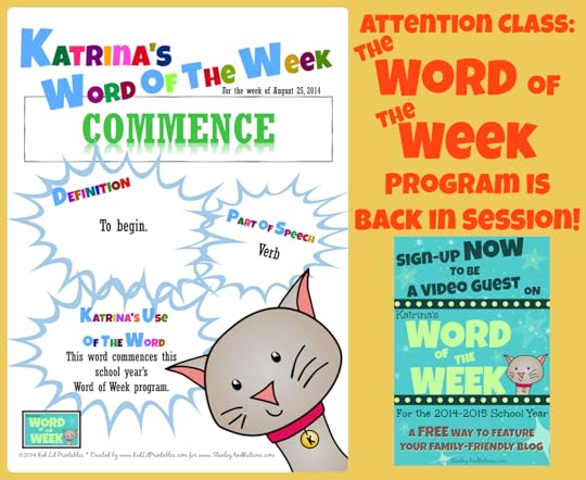 Yippee, the Word of the Week Program COMMENCES today. We will have poster printables of the words available each week, and videos available (as often as possible) throughout the school year. Neighbor Girl created the guest spot for this first video for the 2014-2015 school year. Guest spots are filling up fast. Don't wait to sign-up!