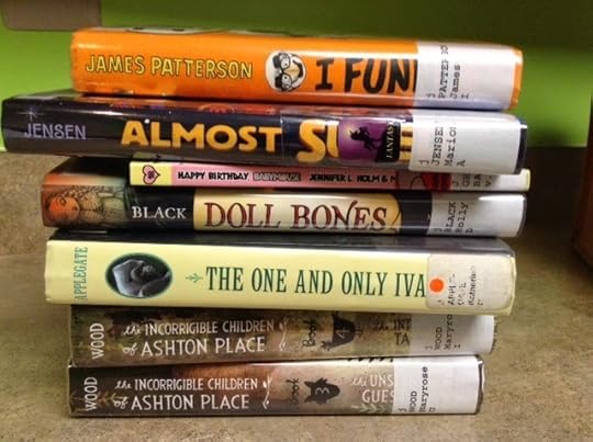 Cool Mom picked up some books at the library. Can you guess which are hers and which are for Neighbor Girl?