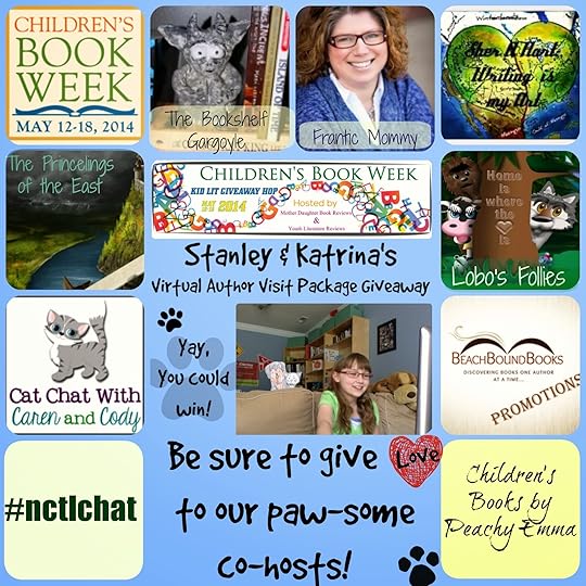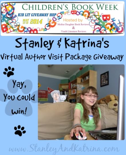 All of the details are below. Scroll down to view the Rafflecopter entry form for our Virtual Author Visit Giveaway or click here to enter, and then be s ure to come back to enter the many other giveaways available in the paw-tastic Children's Book Week Kid Lit Giveaway Hop (scroll all the way down for that amazing giveaway filled linky)! Mother Daughter Book Reviews and Youth Literature Reviews have joined forces to provide you with this giveaway-filled linky list for the week. The giveaways (books, gift cards, cash, or other prizes) are offered by over 100 authors, bloggers, publishers, and publicists. Stanley and I wish to thank our fabulous co-hosts:
