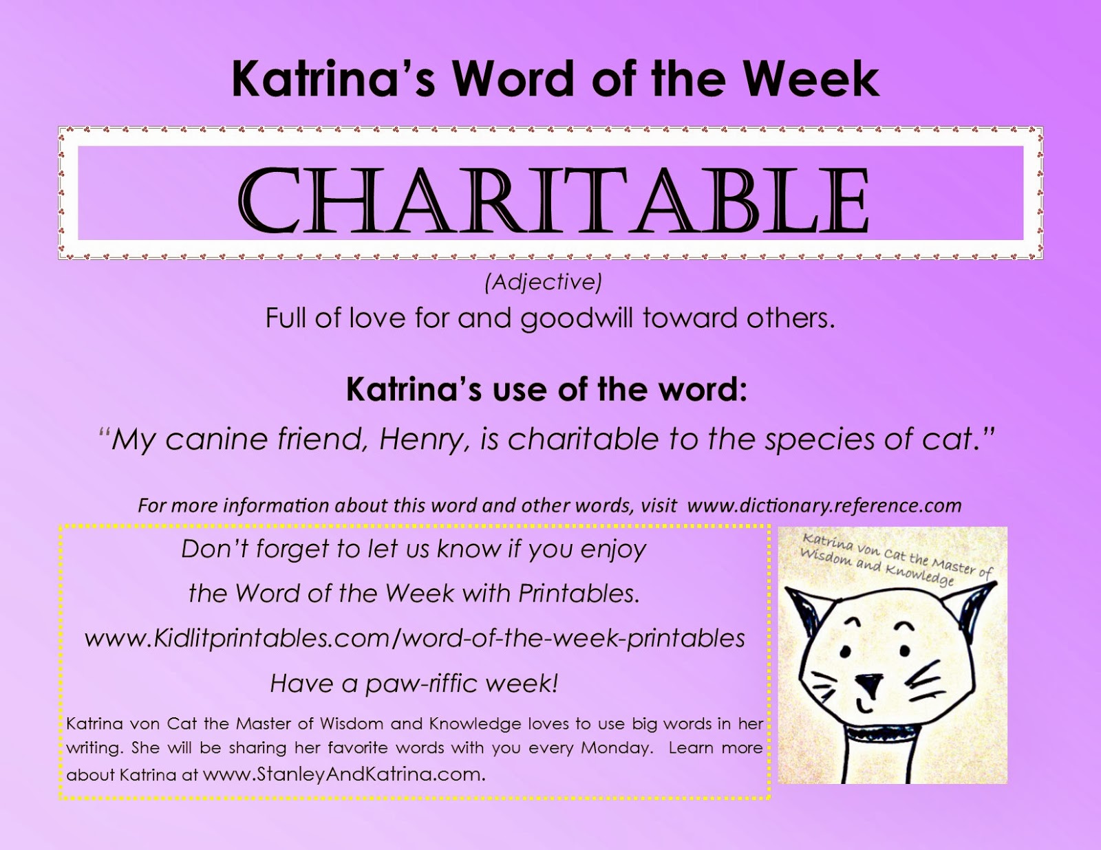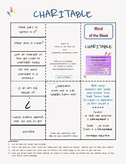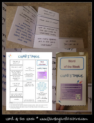Now tell us, how will you use the word charitable this week? Have you seen it used anywhere? Is your school using these words? What fun activities do you have for the word? I want to know and so do my friends - please share your creations and let us know if you are using our printables - that makes us happy!