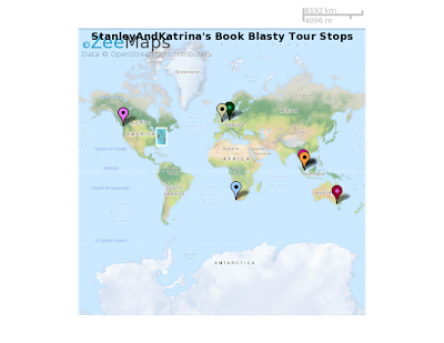 We are having a great time visiting with our tour hosts and their blogs all over the world. Cool Mom decided to have some fun by creating a clickable map of our blog tour stops. Thanks, Cool Mom! Check it out for a fun way to visit with the hosts who have posted to date (we'll be adding the other stops as our tour continues).