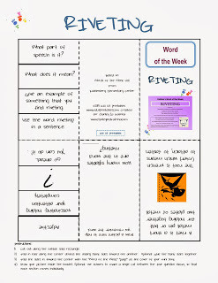Now tell us, how will you use the word riveting this week? Have you seen it used anywhere? Is your school using these words? What fun activities do you have for the word? I want to know and so do my friends - please share your creations and let us know if you are using our printables - that makes us happy!