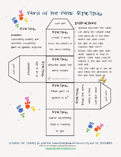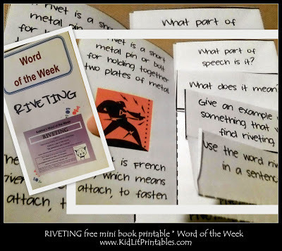 RIVETING vocabulary word cubeFree RIVETING mini book printableWord of the Week blank page to fill out