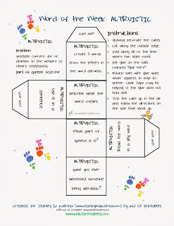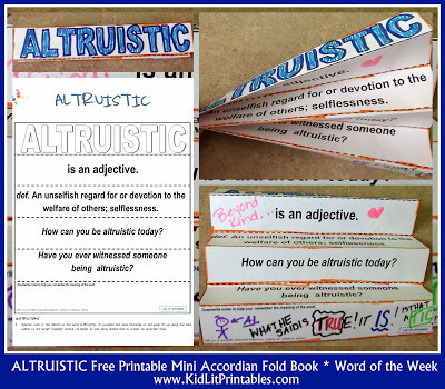 ALTRUISTIC vocabulary word cubePrintable ALTRUISTIC accordian fold mini book.Word of the Week blank page to fill out