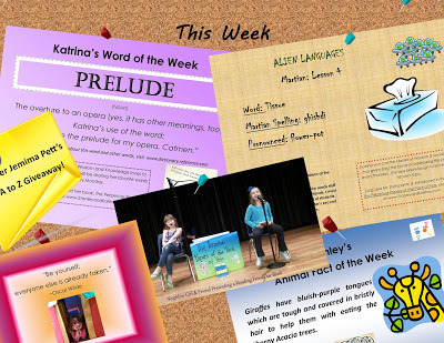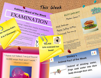 Our Week in Review: Katrina von Cat the Master of Wisdom & Knowledge's Word of the Week: PreludeQuote of the Week, Be YourselfStanley's Animal Fact of the WeekZorg's Lesson. Alien Languages: Martian, Lesson 4Enter Jemima's A to Z Giveaway!Neighbor Girl attended the Lorane Elementary School Fun Day last SaturdayAnother 5 star review received on Amazon: "Loved it. A Kid's Review" Thank you for reading and sharing,