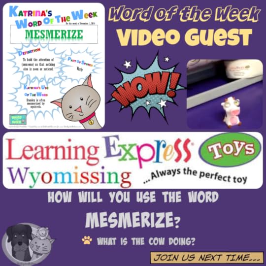 The wonderful staff of Learning Express Toys of Wyomissing, PA are our paw-tastic video guests this week. Neighbor Girl recently had a book signing at this paw-some store, and boy, did she have fun! If you are ever in the area, be sure to check them out, as they are huge supporters of the Word of the Week program. Thank you, Learning Express of Wyomissing (LEW) for hosting Felicia' book signing, and for introducing this week's word of the week: MESMERIZE. Can you use the word MESMERIZE in a sentence?