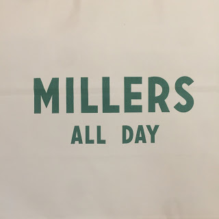 When I go out to eat, I like a place with a good vibe. Millers All Day has a real good vibe; there's a good buzz of conversation, but it isn't too loud, and people were having a good time. I like good food as much as the next guy, but I don't like places that are so reverent about their food that they don't allow laughter. (Also, I can't afford those places.) Millers All Day hits the sweet spot between spirited atmosphere and mosh pit loud. And the waitress was perfect; friendly and hip without being too chummy or demanding you eat something you don't want to, like grits.