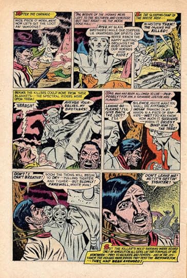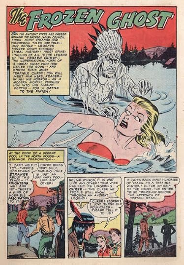 "The Frozen Ghost" was first the title of a old Lon Chaney Jr mystery flick, but here the name is a literal ghost of an Indian, turned into a frost-demon by the Indians' "god of winter." Only a courageous white guy, armed with Indian magic, can descend into the Frozen Ghost's icy lake and destroy the fell spectre.