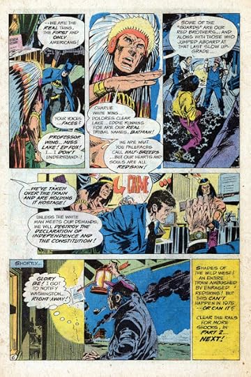 In RAR #16, I gave an example of a 1940s story in which American Indians had to be stigmatized because they had grievances against the U.S. government. But by the 1970s no one reading or writing comics would have doubted that the tribes' many grievances were justified. Thus BRAVE AND BOLD #121 (1975) pits the team of Batman and the Metal Men against a team of aggrieved "redskins" who extort the government for concessions by taking over a train stocked with such prized government documents as t...