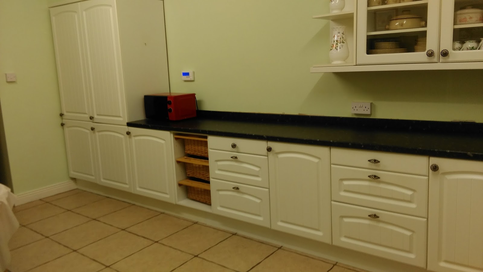 Apart from the joy of having an efficient and quiet heating system, we also gained six feet of additional kitchen worktop and a goodly chunk of extra storage. It took a few weeks to source some matching worktop and units to repair the kitchen and the plastering certainly tested my DIY skills to the limit, but we got there in the end.