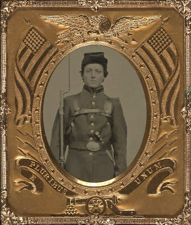 I came across this "tintype" photo while going through the Liljenquist Family Collection of Civil War Photos on the Library of Congress site. Thousands of young Americans answered Lincoln's call to arms in 1861, not just as drummer boys or buglers, but as "soldiers of the Line." Look at this photo...really look...sixteen at most, and yet, it was boys like him who saved our great Republic in its time of great peril. I look at this tintype, into his face, and can't help but feel an enormous pride.-SDJ-