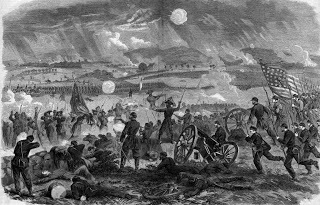 "...the stride of every soldier was quick, full of energy, as they kept time to the fifes and drums that accompanied them into the fight. The ranks advanced in good order, the Rebels shoulder to shoulder, their step a vast swinging movement, as if every man was part of a huge machine spiked with bayonets and battle flags.""Muzzle flashes pierced the tumbling clouds of smoke, and along the Union line could be heard the whiz-zip-wheat! of minie balls, the hard slap of lead striking flesh. Soldiers in blue twirled and fell, doubled over, leaped like drunken dancers..."