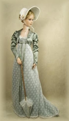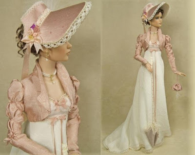 I was poking around the internet, looking for anything I could include in a giveaway basket, or to have with me when I do book signings and came across a site that makes dolls - Crawford Manor. These Regency inspired dolls are beautiful and after checking out their site I realized they are custom made. If I ever have a boat load of disposable cash, I'm gonna get me some.