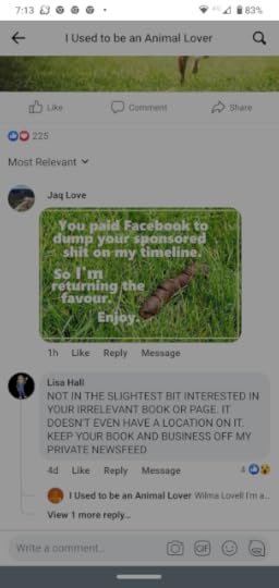 I also have a book launch coming up next week for my memoir, I Used to be an Animal Lover. It's not a cause, like Movember, because it's personal. I'm trying to sell my book and to do that I need to advertise. I've been using Facebook ads which have resulted in a massive increase in engagements on the I Used to be an Animal Lover page. What I was looking for, from those reactions, was people to sign up for Advanced Review Copies and register for the book launch. It's also great to get comments rather than just reactions. However, as with my Movember texts, the results of my advertising campaign have been predictably, but nonetheless disappointingly poor.