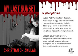 My Last Sunset is a hard-boiled detective story set in a contemporary American high school. Damon Riley is an angry, antisocial teenager with a penchant for solving mysteries. His life is shaken up when Jessica Carpenter, a girl in the grade below his, shoots herself in the halls of the school itself, leaving behind a note that names him as the culprit for driving her to suicide. Taking the bait, Damon embarks on a quest to find out what really happened to Jessica, leading him through a web of conspiracy, betrayal, and brutality. Along the way he learns more than he ever dreamed possible about the girl he could never have saved.