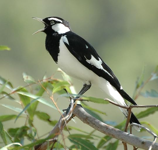 I was outside, enjoying a cigarette in the sunshine, with a pleasant zephyr blowing, when I spied a Magpie Lark attempting to fly into a closed window. It was sitting on the fence with its mate watching on. It had five goes at entering the window, and each time, merely butted its head and staggered (if you can stagger in the air) back to the fence.