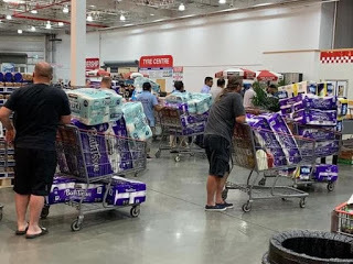 Less well known or acknowledged is how we are designed to survive, and to lean each other, as much as possible to get through hard times. The so called 'will to live' is an exceptionally important part of our programming. The magpies taking all the toilet paper and fighting over what is left are not representative of us. We're better than that because God made us better than that. In times of trouble we come together, we help each other. We make sacrifices for others because we care. In all this we reflect God's character which is, above all else, love. We love because God first loved us. Love only seems natural; in fact it is supernatural.I'll finish with a couple of funny experiences. One at a Coles supermarket, and the other at Domino's pizza. There was no toilet paper on the shelves but I asked a manager-looking type and he got me a four pack from the storeroom. I felt very conspicuous as I paid for the toilet paper and then carried it under my arm through the entire length of the mall. I couldn't stop myself from thinking, 'they're coming to get me. They want the toilet paper.'