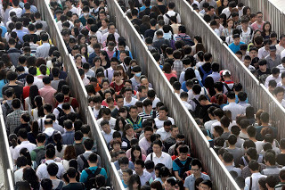 Finally, we seemed to be inching forward again in three or four different lines which I'm certain was only supposed to be two. It's a people jam par excellence. I think I know how to function in a queue, but I realize I could have it all wrong when every step forward I take results in the person behind me banging into me. It happens three or four times, and although I might be mistaken, I have a feeling it's just plain rudeness on his part. So I turn around and tell him to stop it. I make a gesture with my palms, suggesting he keep his distance. He smiles, nods his head and we move on.