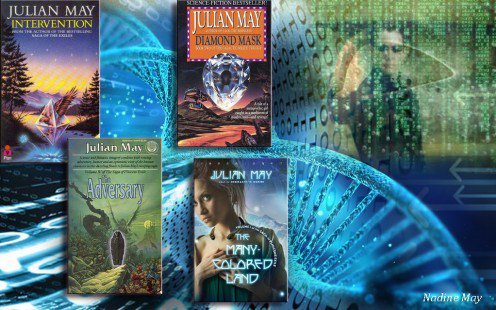 Julian May an American science fiction author with her Galactic Milieu Trilogy has inspired me no end. All her works are situated in the same ‘world’ – our earth from now till 22nd century and six million years before…The major differences are the development the mental powers, rejuvenation by choice and an alien milieu ready to deceive humanity into a mental unity and a one-way gateway to Pliocene Earth.