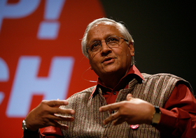 La imagen de Gandhi (un distinguido universitario) hilando a mano en una rueca artesanal y sentado en el suelo parece la negación misma del progreso. Y, sin embargo, ha inspirado muchas innovaciones para el progreso desde abajo. A los nombres de Gandhi (1869-1948), Schumacher (1911-1977), Illich (1926-2002), Amartya Sen (1933), Muhammad Yunus (1940) y Paul Polak (1941), hay que añadir el de Bunker Roy (1945) con una imagen insólita: campesinas analfabetas que electrifican sus aldeas con paneles solares.
