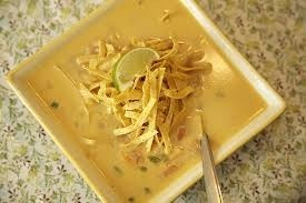 2 boneless skinless chicken breast (cubed and cooked) 8 cups chicken broth1 cup carrot, diced very thin1/4 teaspoon ground allspice1/2 teaspoon fresh thyme, chopped1/8 teaspoon ground cinnamon1 tablespoon fresh ginger, chopped1 tablespoon garlic clove, minced1 cup chopped tomato1 cup coconut milk1 teaspoon hot pepper sauce (I never put this in mine. I don't do spicy!)1 cup mozzarella cheese, shredded2 cups fried corn tortillas, cut into strips (Or just crush up some tortilla chips like I do.)2 limes, cut into wedgessalt