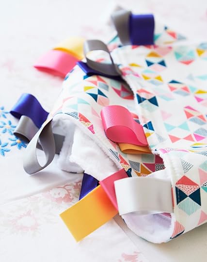 Add in more ribbons or other tactile elements such as a pom-pom trim to make a more sensory blanket.