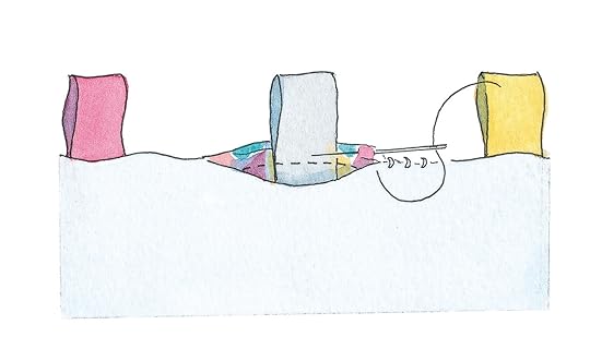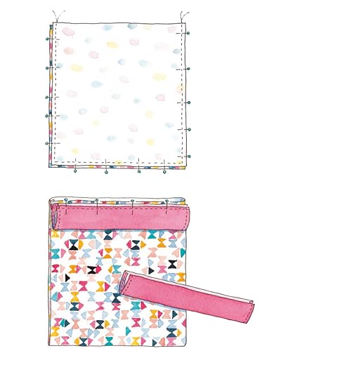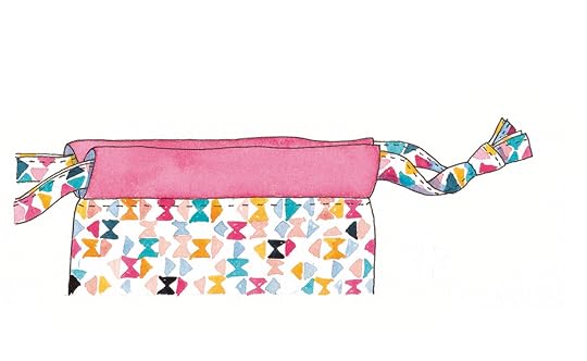 TIP Sewing the ribbons in place before stitching the main and backing fabrics together prevents the ribbons from sliding apart and helps to create a neat finish.