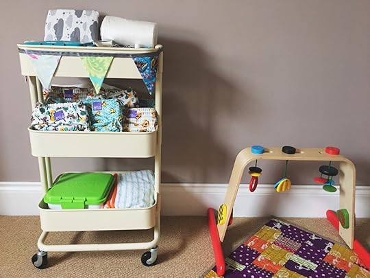 As there will be times when this will be a guest room, I decided to switch out a conventional change table and make up a change station instead…so it can be easily moved to a different room so that not everyone in the house needs to be woken up for a 3am poopy nappy!