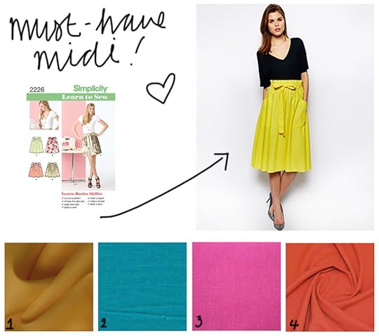I wish that I could spend this Sunday stitching and making something beautiful, stopping only to eat more Easter egg chocolate. But, I have a mountain of DIY projects that need my attention and let’s face it those stairs are going to sand and paint themselves (I know this to be true, as they haven’t magically done them by themselves yet!) so it is probably a good thing that my sewing machine is still in the shop for it’s service, or I’d be sneaking off to get work up one (or three!) of these delicious midi skirts!