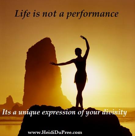 Life is not a performance. Its a unique expression of your divinity. Unfortunately most of us have been conditioned to believe that who we are is what we do, and that our value is dependent to how well we do it. But you have the power to choose what you believe. Once you become aware that you are living from conditioning, that realization comes with a choice. You can continue to believe that life is about performing, which creates stress and tension. Or you can choose a new belief that creates harmony and balance.