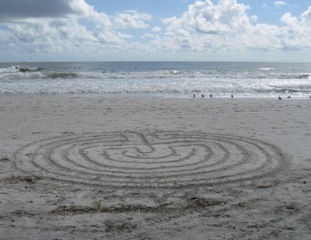 Whenever I go to the beach, I like to draw a 7-circuit labyrinth in the sand with a stick. Its the quickest and easiest way to construct a labyrinth and walk it's path. Click here for directions on how to make your own labyrinth.