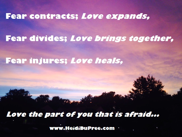 Fear contracts and disrupts our mind, body and spirit because it contracts and disrupts our energy. Love expands and heals our mind, body and spirit because it expands and restores our energy. To heal fear -- love the part of you that is afraid...