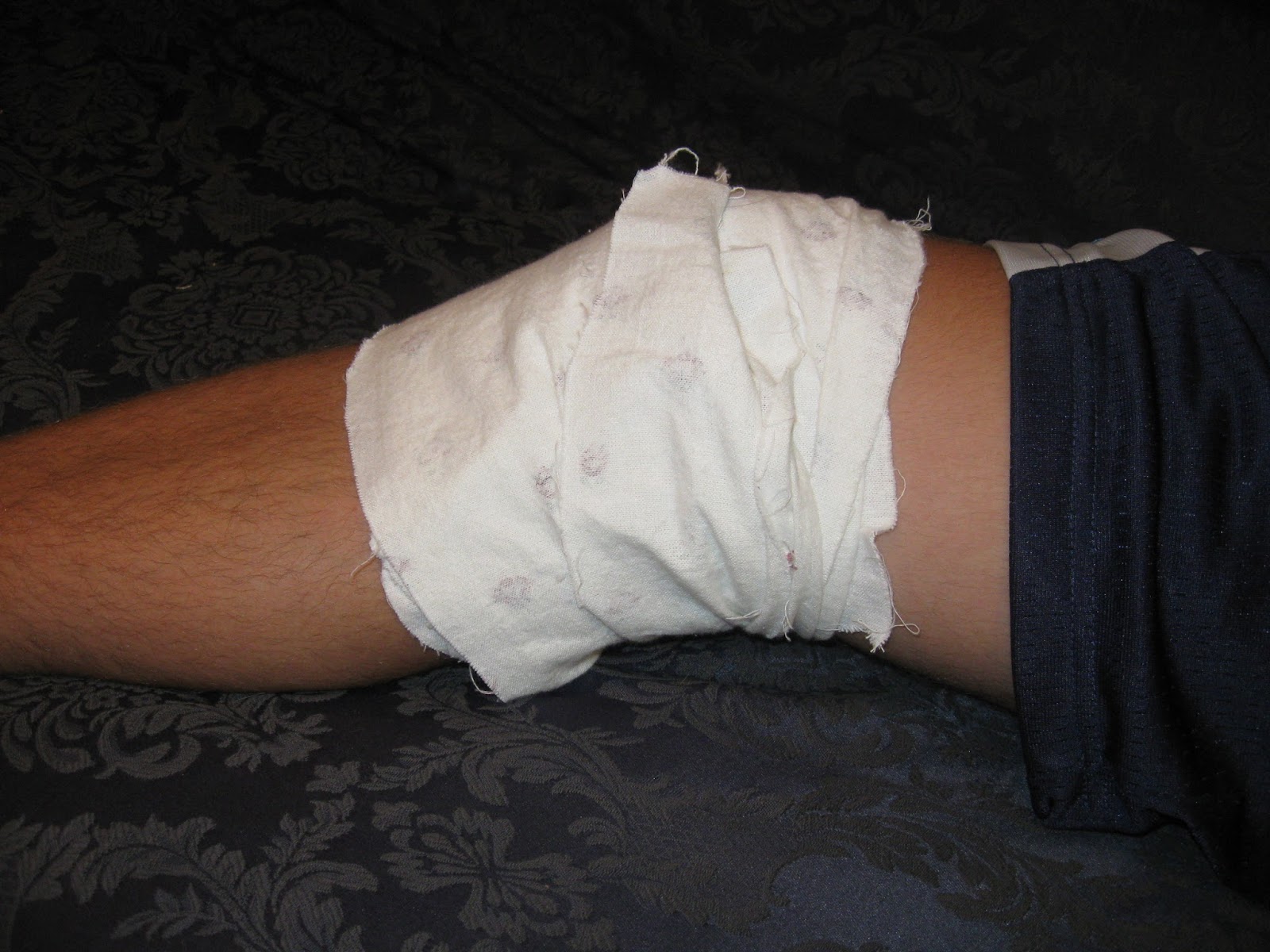 Here is my personal technique: I cut a yard of flannel-type cotton fabric into strips. I soaked one strip in ice water, wrung it out, and wrapped it around the inflamed area, covering it with several layers of dry strips. When the bottom layer of wet fabric became warm, or dried out, I soaked it in ice water again, wrung it out, and repeated the process, covering with dry strips. I cut enough strips so that I had enough to rotate through the dryer as the covering strips became damp.