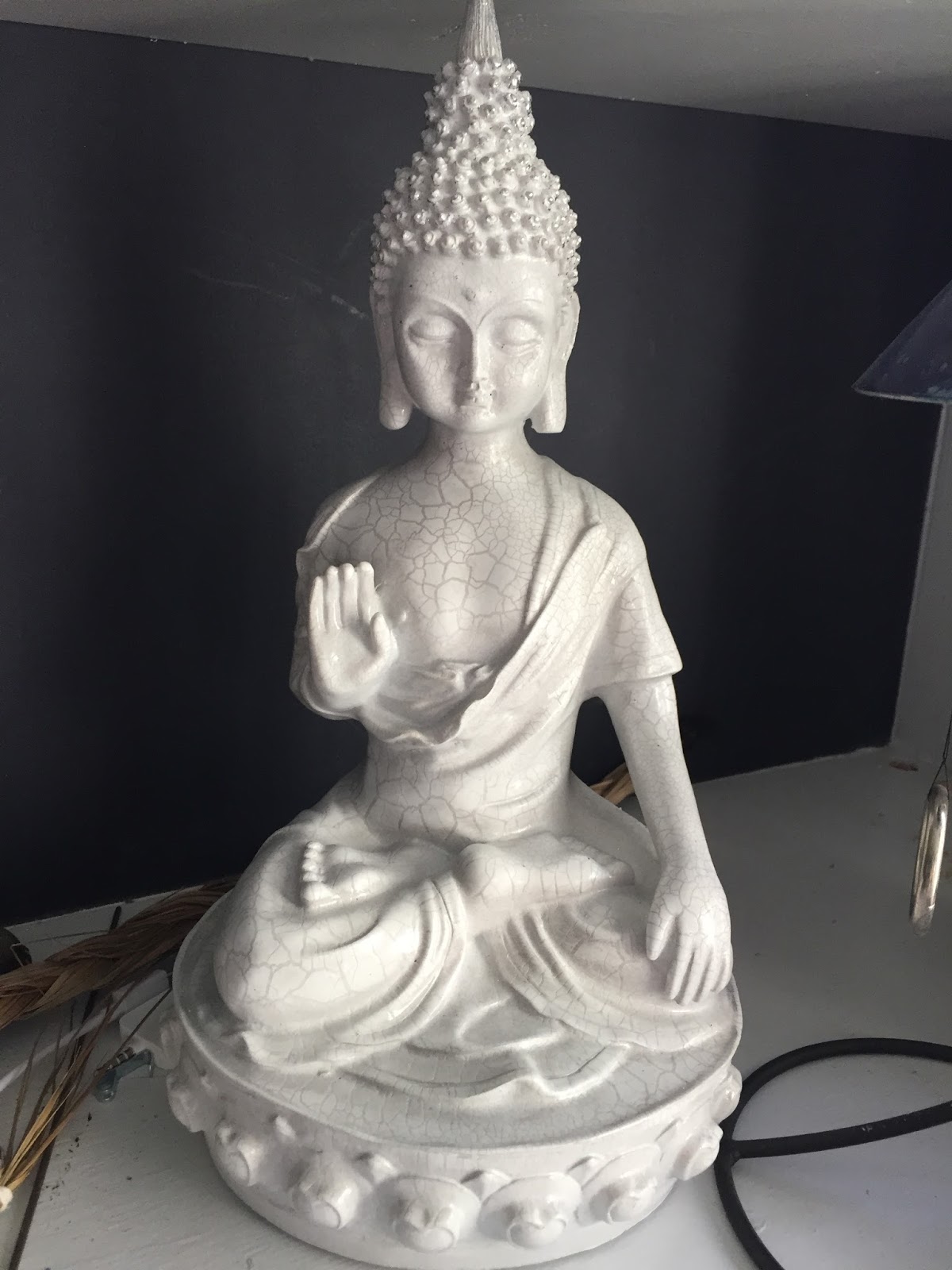 5. Set up an altar area to place objects that represent your new moon wishes, and to hold your affirmations for your new year. I received this beautiful Buddha statue for my birthday and placed him on my altar with my birthday wishes at his feet.