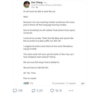 AI is an irrelevance for me as a writer, as far from impinging on my work as drink-driving laws impinge on my commute. (I write at home and I don't drink.)