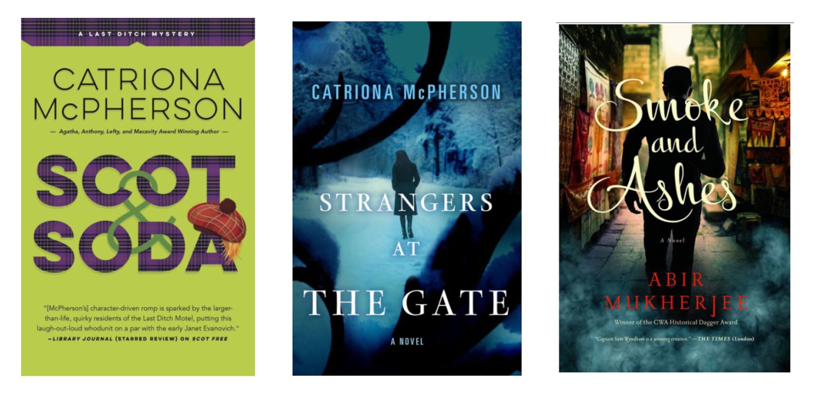 First, huge congratulations to our own Catriona McPherson. Her Scot & Soda was named a finalist for the Lefty for Best Humorous Novel, and her Strangers at the Gate was...
