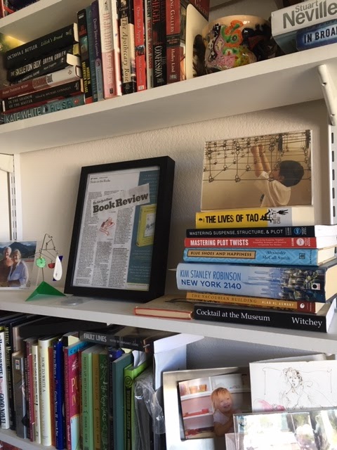 Q: You’ve just read Marie Kondo’s book “The Life-Changing Magic of Tidying Up: The Japanese Art of Decluttering and Organizing,” and you’re getting ready to clean up your writing space/office. What things “spark joy” and what would you get rid of? Do you keep old drafts of stories/novels, e-versions, paper? Copies of your books, others’ books? Knickknacks? Etc.