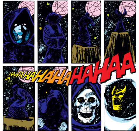 It’s like an early draft of the Infinity Wars, as well as providingthe sequel to Captain Marvel’s Thanos War storyline and the conclusionto Warlock’s long-running saga. Thanos has collected most of the Infinity gems(known as “soul gems” at this point), and he sets out to destroy the sun inorder to win the favor of Death herself. The Avengers, Captain Marvel,Moondragon, and Warlock, naturally, head into space to stop him. Great cosmicaction ensues in an epic tale about life and death.