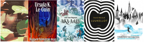 Tímakistan is nominated for Tähtifantasia (”Star Fantasy”), the award for best translated fantasy novel in Finland. This year’s line-up includes five books with quite a different view of what fantasy is. Here are the books with the Finnish titles: